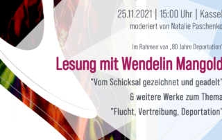 Bildungsreise nach Büdingen mit der Schreibwerkstatt „Gegen das Vergessen“ mit dem Themenschwerpunkt Wolgadeutsche anlässlich 80 Jahre Deportation der Russlanddeutschen Im Rahmen verschiedener Vorträge, Workshops und Besichtigungen werden den Teilnehmenden zeitgeschichtliche Zusammenhänge im Kontext der Deportationsgeschehnisse vermittelt, wobei wir ein besonderes Augenmerk auf die Wolgadeutschen legen. Im Erinnerungsort Büdingen ...