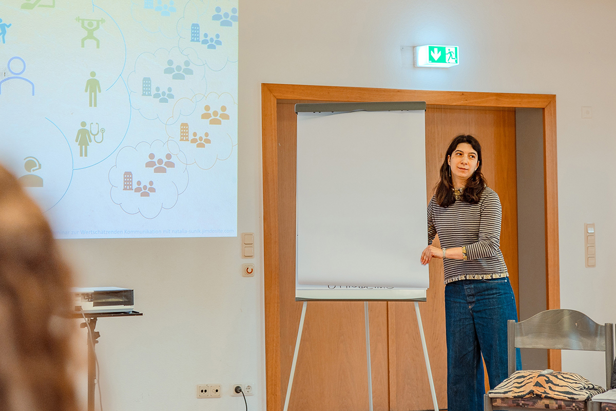 Vom 7. bis 9. November sowie vom 19. bis 21. Dezember 2025 fand in Idstein ein mehrtägiges Seminar zur wertschätzenden Kommunikation statt, das von IDRH-Referent Ilya Fedorov organisiert und von der Trainerin Natalia Sunik geleitet wurde. Im Mittelpunkt stand die Auseinandersetzung mit den Grundgedanken der wertschätzenden Kommunikation nach Marshall Rosenberg und deren Bedeutung für einen respektvollen, reflektierten Austausch im persönlichen wie im gesellschaftlichen Alltag.