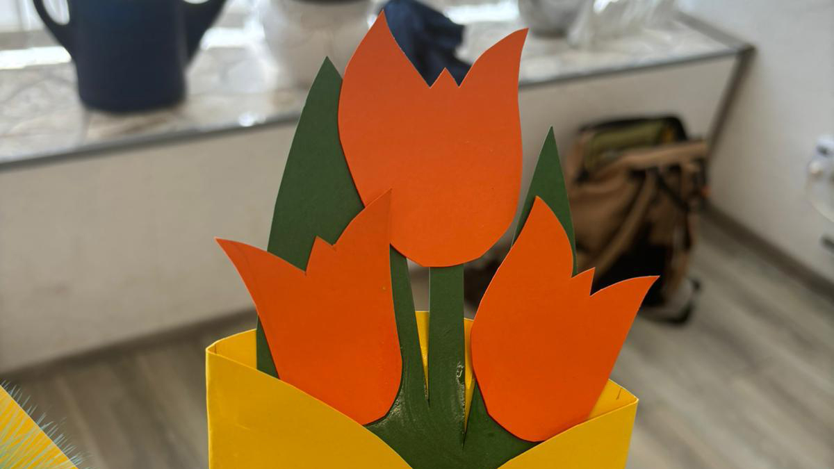 Währenddessen kümmerten sich die Leiterinnen der Kreativwerkstatt, Tatiana Jung und Elisa Paschenko um die Kinder und bastelten mit ihnen Geschenke für ihre Mütter und Omis zum Muttertag. Wir ließen den Abend bei Kaffee, Kuchen und leckerem Eis ausklingen.