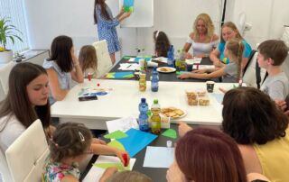 Ferienzeit ist Familienzeit! Bei unserer Ideenwerkstatt gaben Natalie Paschenko und Nataliia Tertychna kreative Inspirationen für die Gestaltung der freien Wochen. Sie gaben Empfehlungen für Aktivitäten, bei denen Klein und Groß Spaß haben und bei denen garantiert keine Langeweile aufkommt. Im anschließenden Workshop konnten die Teilnehmenden künstlerisch aktiv werden und nach Anleitung von Nataliia malen und basteln.