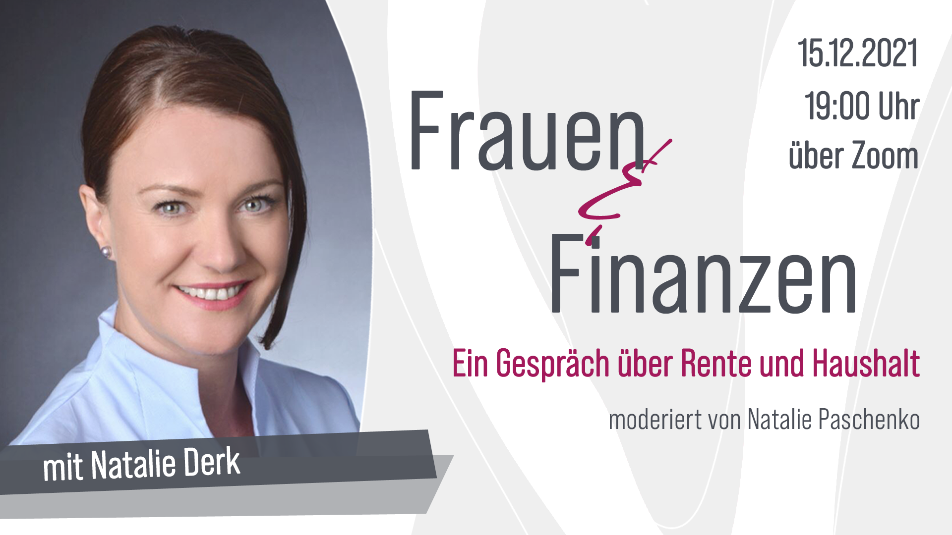 Frauen, insbesondere Mütter, sind oft von Altersarmut betroffen. Das Thema Altersvorsorge wird für sie daher immer wichtiger. Doch wie funktioniert Vermögensbildung modern und einfach? Natalie Derk ist Spezialberaterin für Frauen bei einer Bank sowie Gewerbe- und Anlageexpertin. In ihrem Vortrag thematisiert sie u.a. die Auswirkungen der Inflation auf die Rente, erklärt die Bedeutung des Rentenbescheids und die Führung eines Haushaltsbuchs. Mit Derks Fünf-Punkte-Plan „So sorgen wir Frauen vor“ erhalten Sie wichtige Methoden, um Ihre finanzielle Situation im Alter aktiv gestalten zu können.