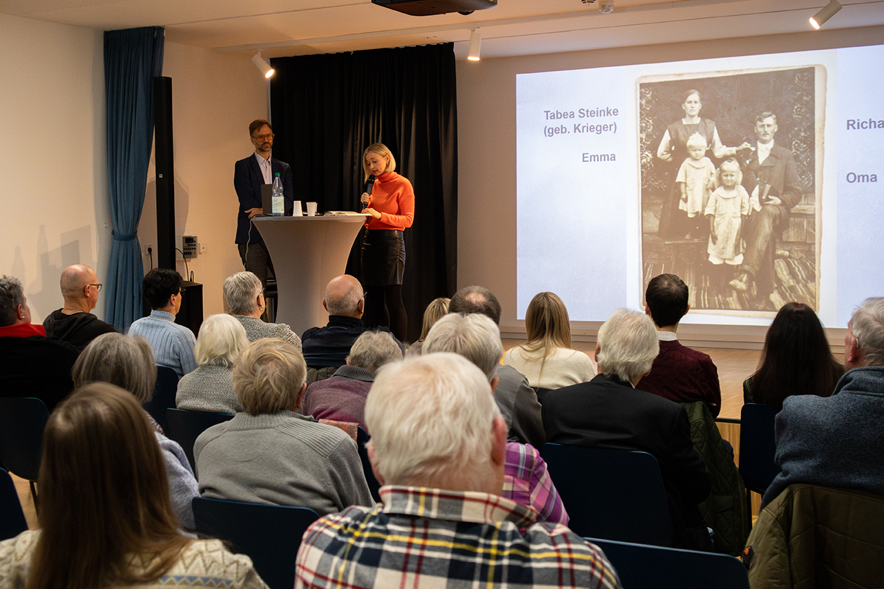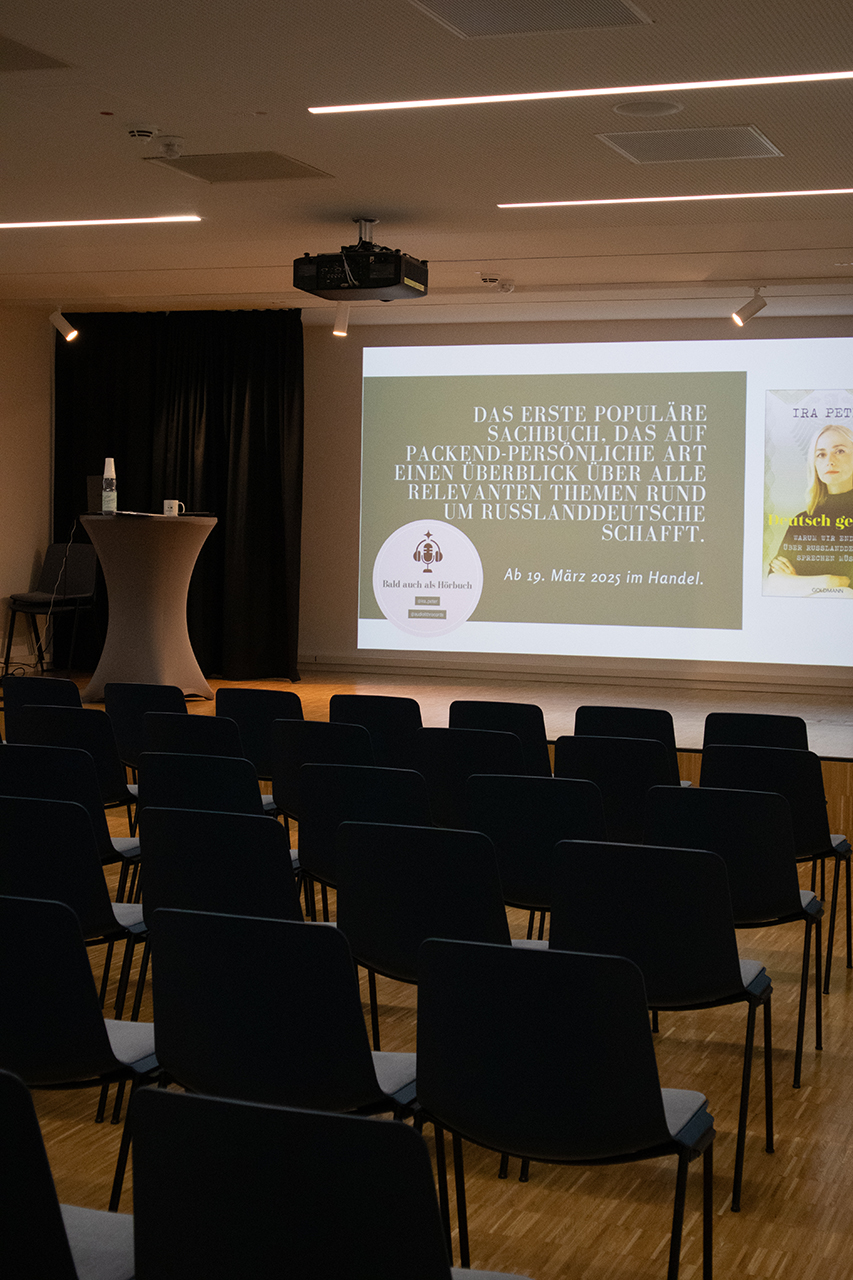 Nach der Lesung lud eine moderierte Podiumsdiskussion mit der Autorin, dem Landesbeauftragten sowie Vertretern russlanddeutscher Selbstorganisationen zum Gespräch über Herausforderungen, Teilhabe und Sichtbarkeit der Russlanddeutschen ein.