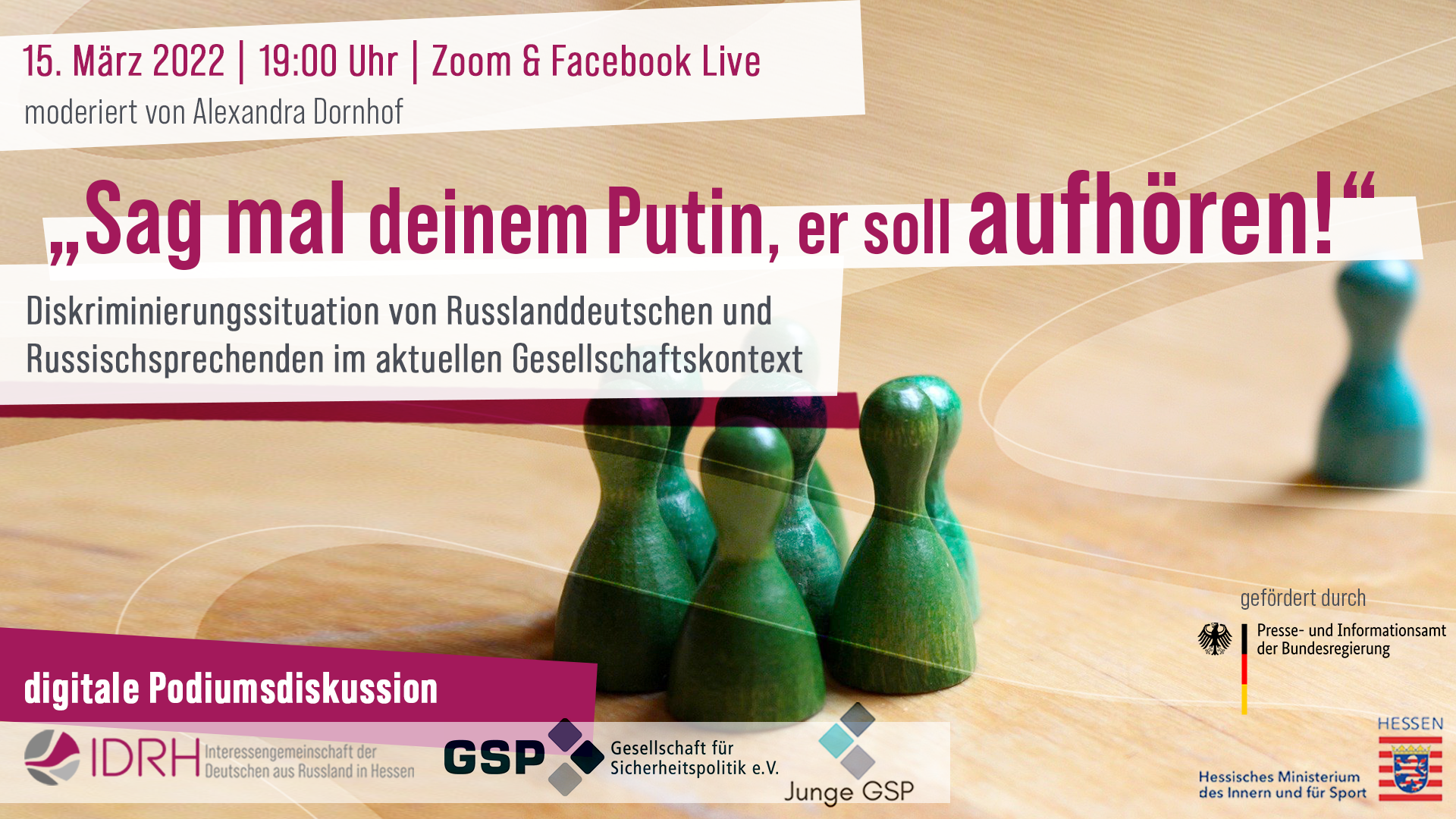 Nachdem wir uns in einer der letzten Veranstaltungen der Situation in der Ukraine gewidmet haben, wollen wir diesmal die domestischen Auswirkungen der Krise betrachten und gemeinsam ein deutliches Zeichen gegen Hass, Diskriminierung und Ausgrenzung setzen. Dazu lassen wir Experten und Betroffene zu Wort kommen, sprechen und informieren dabei aber auch über die Falschinformationen, die zu diesem Thema kursieren.