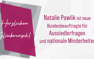 Das Bundeskabinett hat die Bundestagsabgeordnete Natalie Pawlik (Bundestagswahlkreis Wetterau I) zur neuen Beauftragten der Bundesregierung für Aussiedlerfragen und nationale Minderheiten berufen. Gleichzeitig hat das Bundeskabinett Herrn Dr. Bernd Fabritius mit Ablauf des 13. April 2022 von der Funktion des Beauftragten der Bundesregierung für Aussiedlerfragen und nationale Minderheiten entbunden. Zur ...