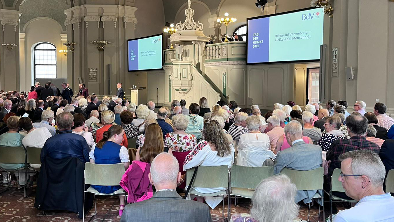 Am 26. August 2023 fand unter dem Leitwort „Krieg und Vertreibung – Geißeln der Menschheit“ der Tag der Heimat des Bundes der Vertriebenen (BdV) in der Französischen Friedrichstadtkirche in Berlin statt. Zahlreiche deutsche Heimatvertriebene, Flüchtlinge, (Spät-)Aussiedler und Vertreter der deutschen Minderheiten sowie Politiker, Diplomaten und Kulturschaffende nahmen daran teil.