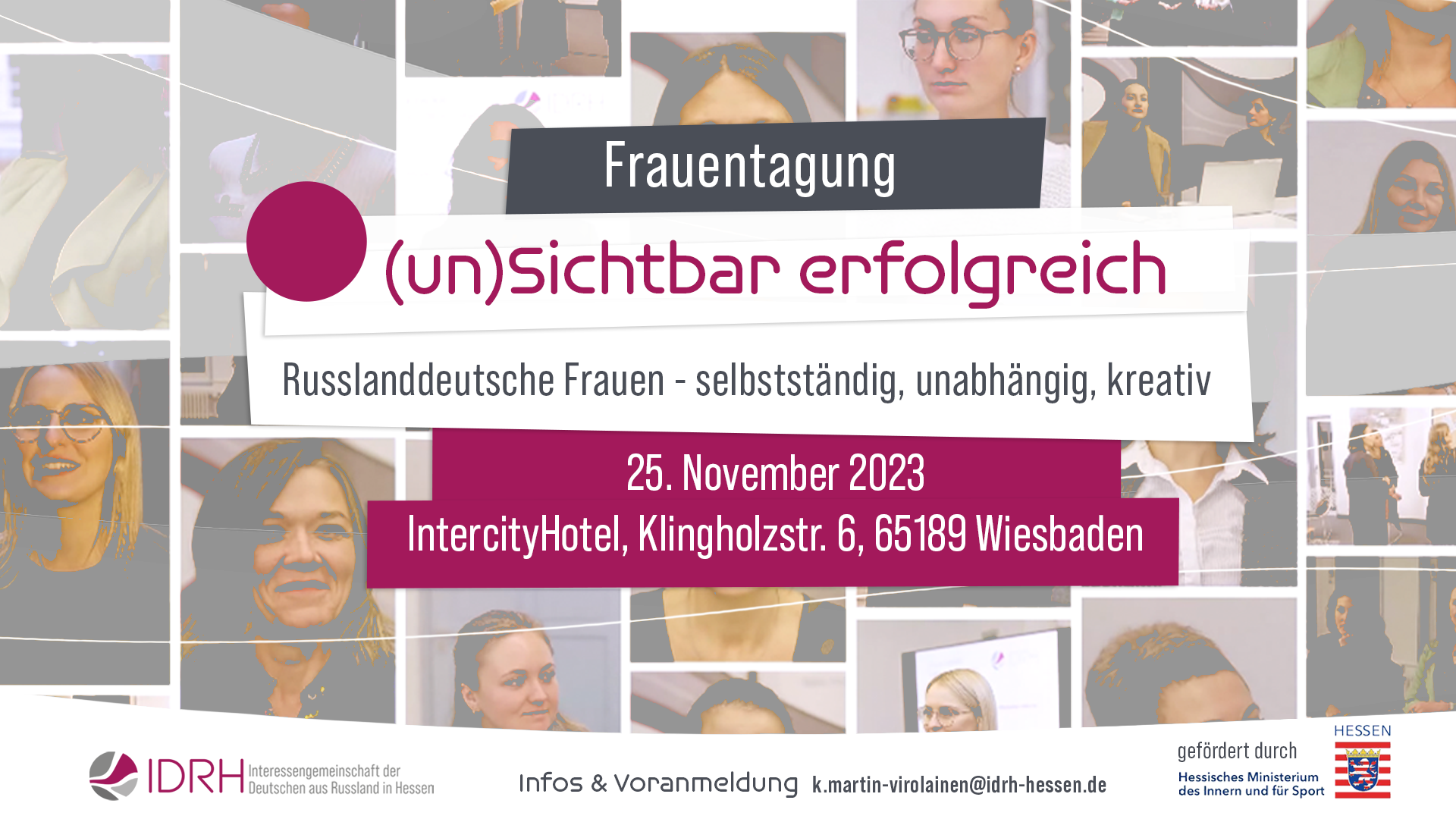 Am 25. November 2023 fand im Intercity Hotel in Wiesbaden die zweite Auflage des Frauenforums der Interessengemeinschaft der Deutschen aus Russland in Hessen (IDRH) statt. Diesmal standen Themen wie Selbständigkeit, berufliche Entfaltung, kreatives Management sowie Vorsorge und finanzielle Bildung im Mittelpunkt. Ausschlaggebend für die Themenwahl war der Wunsch der Frauen aus der Feedback-Runde des ersten Forums im Jahr 2022.