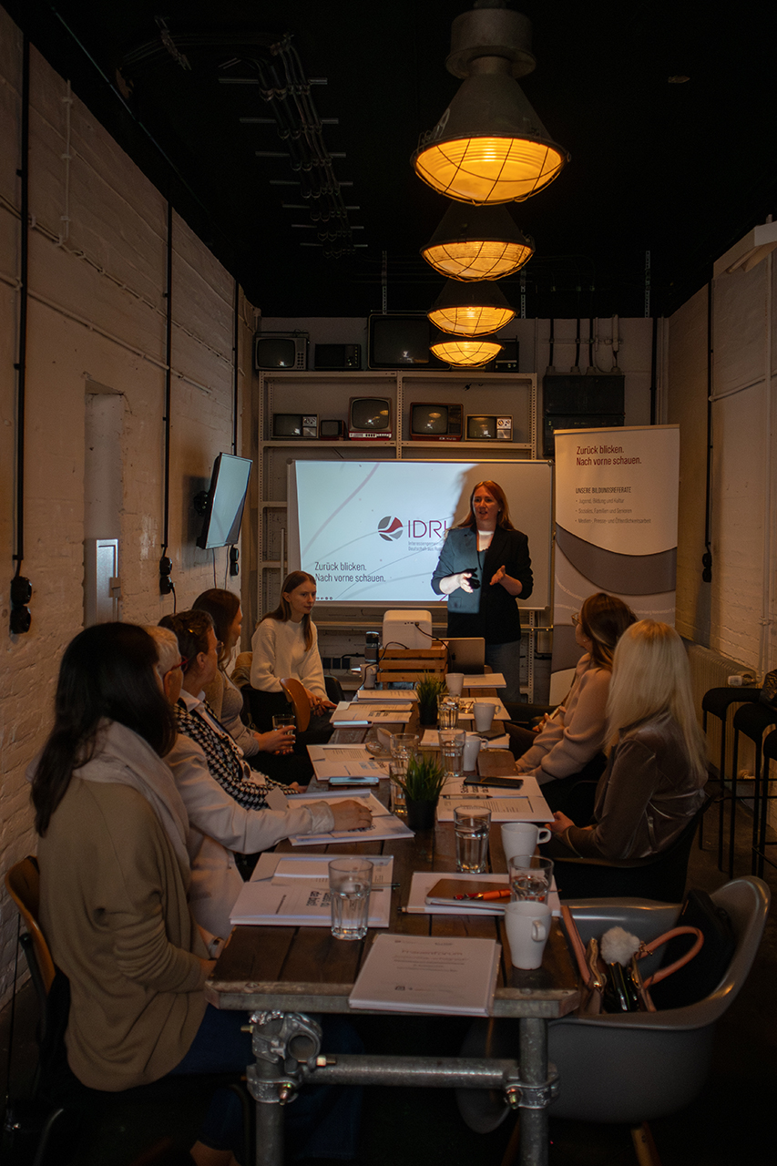 Zu Beginn begrüßte Katharina Martin-Virolainen die Anwesenden und stellte das Frauenforum als Format vor. Im Anschluss führte Katharina Haupt, unsere Referentin für Medien, Presse und Öffentlichkeitsarbeit, in die Arbeit der IDRH ein und gab einen Überblick über den Ablauf und die thematische Ausrichtung des Tages.