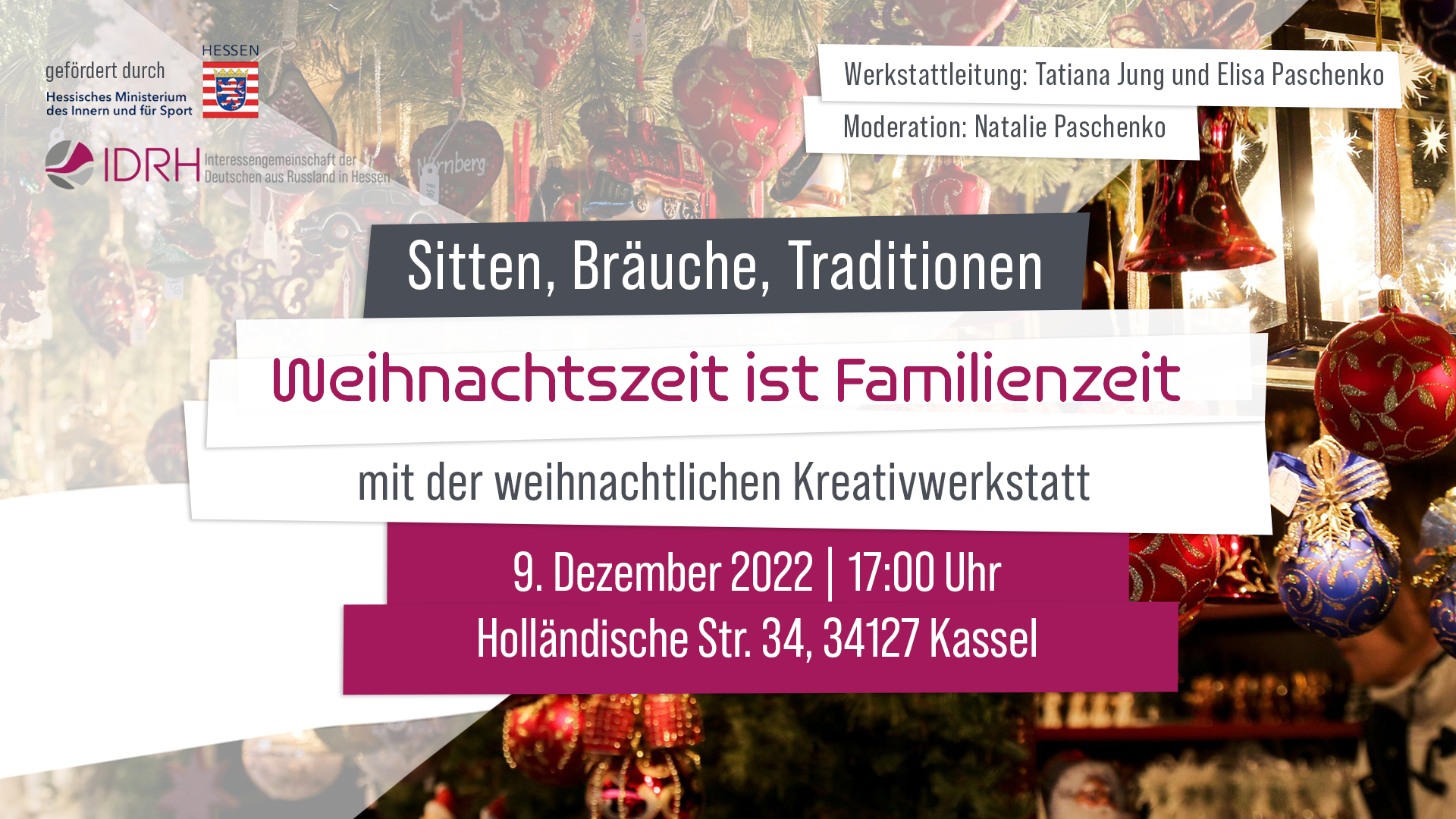 Zwischen Weihnachtsbäckerei und Bastelstube, zwischen Krümeln und Schnipseln – am 9. Dezember 2022 organisierte die IDRH-Bildungsreferentin Natalie Paschenko in Kassel eine Kreativwerkstatt für Kinder und Erwachsene.