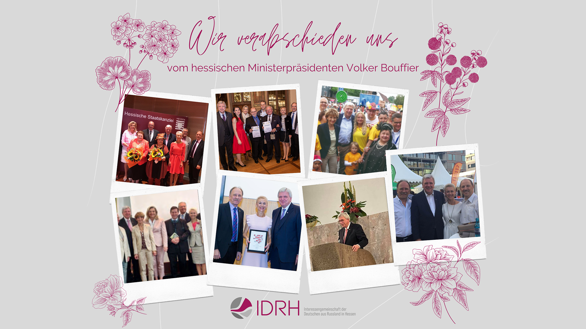 Wir, die Russlanddeutschen in Hessen, danken Ihnen herzlichst für Ihr langjähriges Vertrauen und die erfolgreiche Zusammenarbeit. Für unsere Belange hatten Sie stets ein offenes Ohr. Wir wussten Sie an unserer Seite und konnten mit Ihrer Erfahrung und Ihrer Unterstützung rechnen.