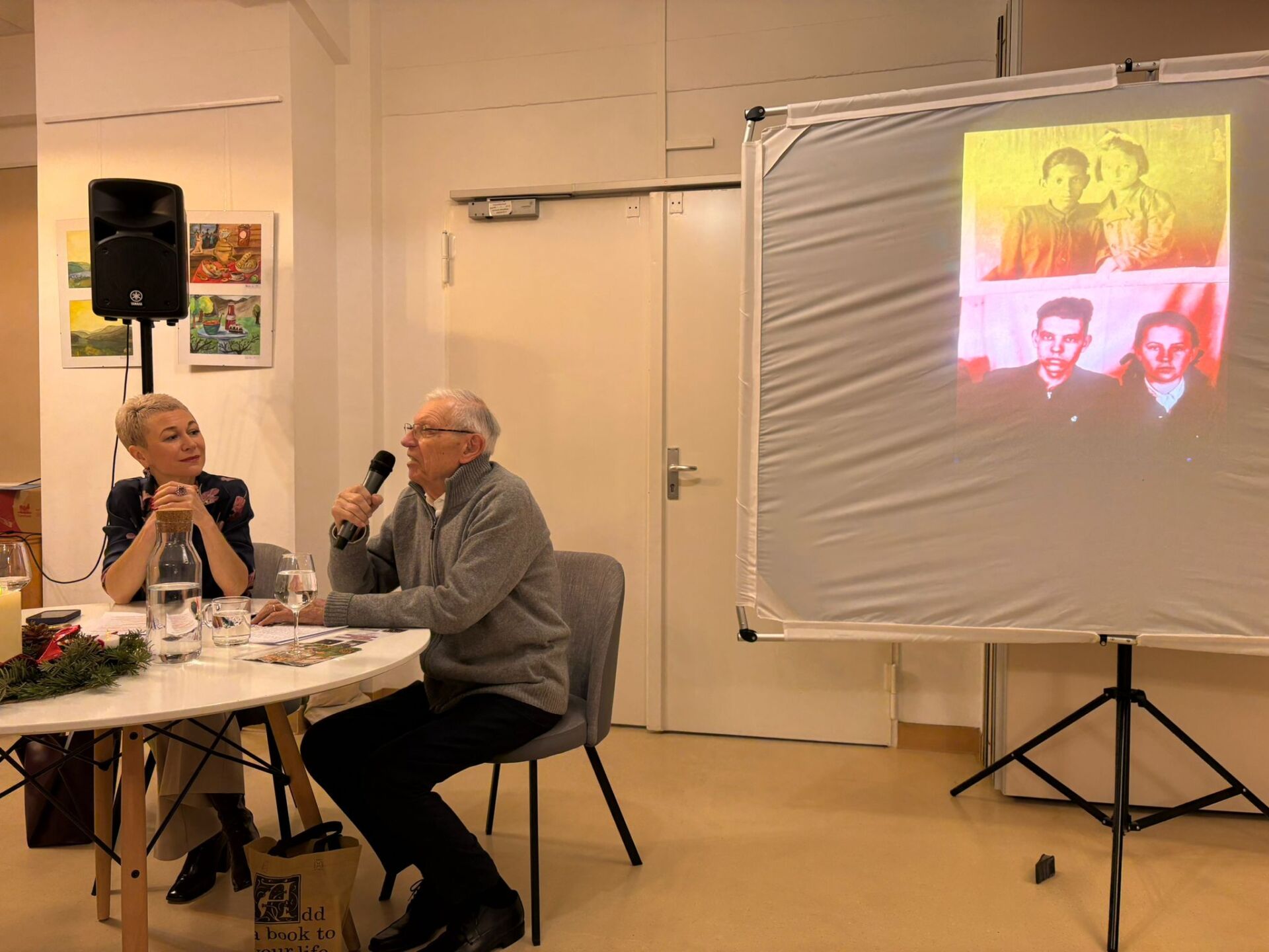 Das Gespräch wurde von IDRH-Geschäftsführerin Albina Nazarenus-Vetter moderiert und vom russlanddeutschen Autor und Künstler Viktor Hergenreder musikalisch begleitet.